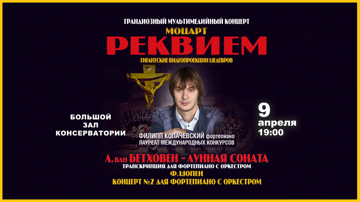 Во втором отделении прозвучит 1-я часть великой «Лунной сонаты» Л. Бетховена и шедевр Ф. Шопена — 2-й фортепианный концерт. За роялем — выдающийся российский пианист, лауреат международных конкурсов — Филипп Копачевский! За дирижерским пультом — блистательный дирижер Арсентий Ткаченко.