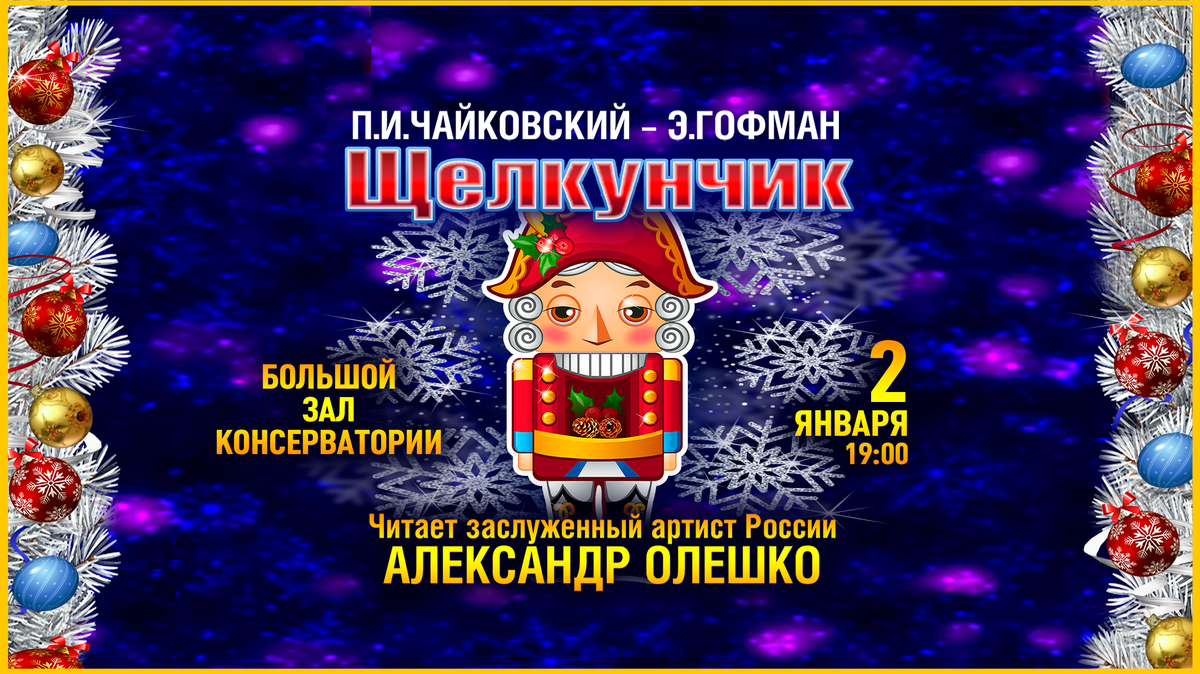 Грандиозный новогодний музыкально-драматический сказочный концерт П.И. Чайковского и Э. Гофмана «Щелкунчик» в блистательном исполнении народного артиста России Александра Олешко, всемирно известного итальянского маэстро Алессандро Дагостини и большого симфонического оркестра.